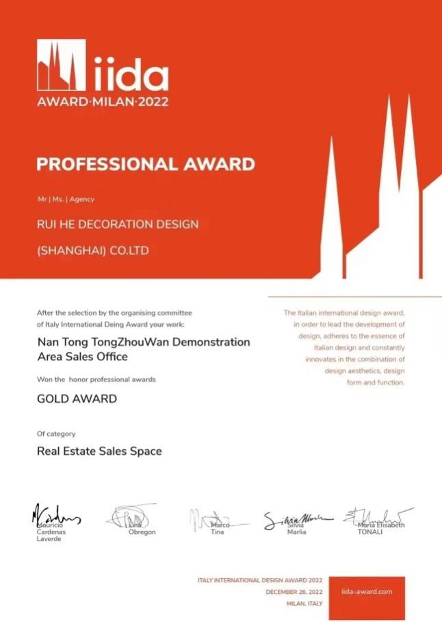近日,盛和房產(chǎn)開發(fā)的盛和?灣上文華項目(通州灣TR20011地塊)示范區(qū)售樓處設(shè)計方案從全球包括意大利、法國、西班牙、日本、韓國、中國及港澳臺等幾十個國家地區(qū)的設(shè)計師和設(shè)計機構(gòu)近千套設(shè)計作品中脫穎而出,斬獲2022意大利IIDA AWARD國際設(shè)計大獎地產(chǎn)售樓類金獎。